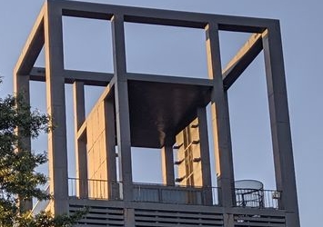 Photos below show the carillon bell tower with bells in August and without bells this week.