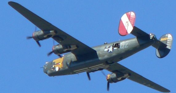 A Consolidated B-24 Liberator makes a flyby. Apparently, this is the only restored Liberator still flying.