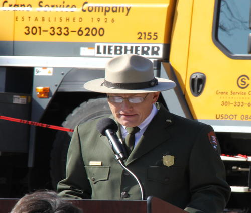 During Monday’s ceremony, Charles Cuvelier, National Parks Service superintendent of the George Washington Memorial Parkway, and Ambassador Haspels spoke of the friendship between the United States and the Netherlands symbolized by the carillon. As workers used a crane to remove bells from the carillon tower behind them, the two men rang small hand bells to signify the last bells that will ring at the site while the renovation proceeds. The Park Service recorded a video of the second-largest bell being lowered from the carillon Oct. 21.