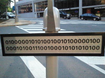 Oh, and that coded message in the image, above? That is part of the ARPANET historical marker sign outside the office building at 1400 Wilson Blvd. in Arlington, Virginia, the former headquarters of ARPANET, about 2 miles away from the Pentagon. Have you broken the code yet? Email me if you need a hint.