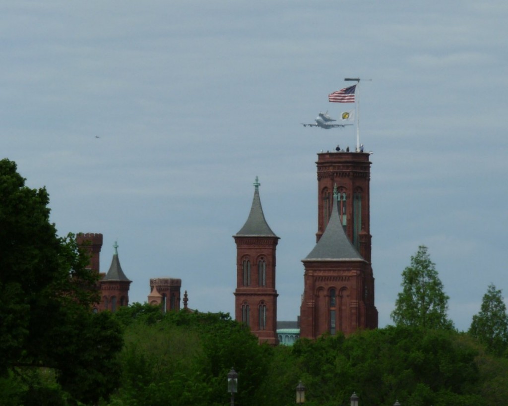 Here are some of the photos I captured today of Space Shuttle Discovery flying over D.C. today on board its Boeing 747 carrier. The shuttle circled around D.C. a few times before heading for its final resting place at the National Air and Space Museum Steven F. Udvar-Hazy Center next to Dulles International Airport.