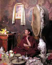 Tibetan monks prepare for evening meditation and chanting. My Tibetan translator grew up with these monks so I got to see the joyful side of monastery life - wrestling and joking.